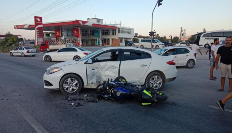 Ein im Bezirk Antakya fahrendes Auto kollidierte mit einem in die gleiche Richtung fahrenden Motorrad.