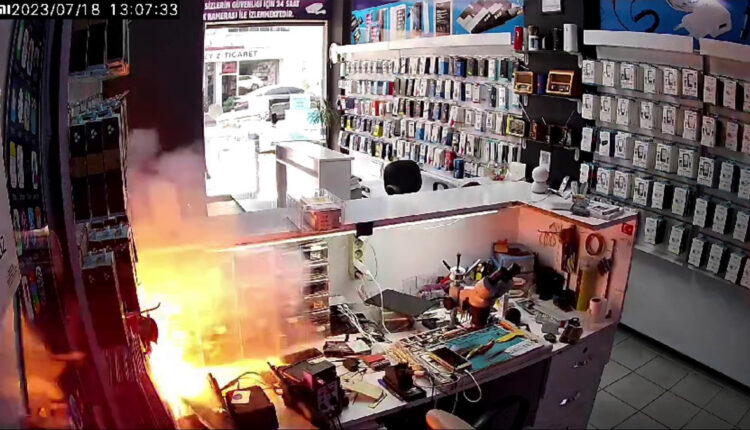 Diese Momente wurden Sekunde für Sekunde auf der Überwachungskamera reflektiert. Das Telefon wurde nach der Explosion unbrauchbar.