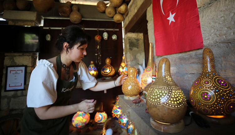 Katerina Songör, die İbrahim Songör (40) kennenlernte, als sie als Übersetzerin in einem Privatkrankenhaus arbeitete, ließ sich 2016 in Kuşadası nieder. Katerina Songör, die aufgrund ihrer Heirat ihren Job aufgab, lernte in ihrer Freizeit zu Hause die Kunst des Kürbismachens von ihrem Schwiegervater Muammer Songör. Songör, der seine Kunst aufgrund einer Kunstausbildung in kurzer Zeit entwickelte, gründete 2018 mit der Unterstützung von KOSGEB seine eigene Werkstatt.