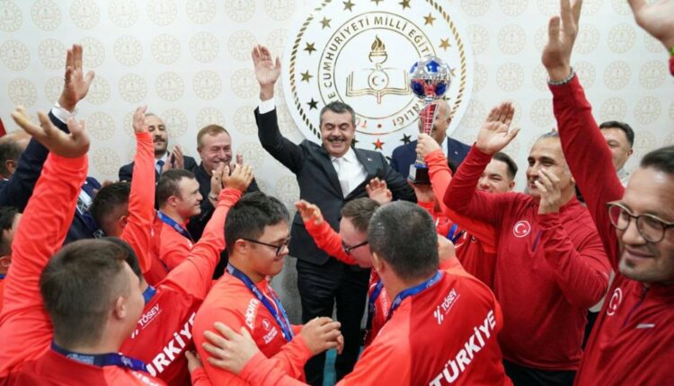 Minister für nationale Bildung Yusuf Tekin empfing im Ministerium für nationale Bildung die Down-Syndrom-Spezial-Futsal-Nationalmannschaft, die Portugal im letzten Spiel der Europameisterschaft in Italien mit 2:1 besiegte.
