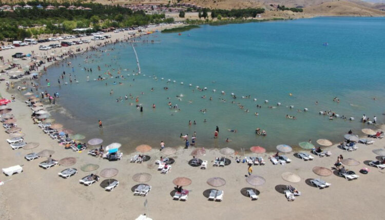 Bürger, die sich in Elazığ abkühlen wollten, strömten zu den Stränden am Ufer des Hazar-Sees, der mit seiner Tiefe an erster Stelle steht und 22 Kilometer lang und 6 Kilometer breit ist.