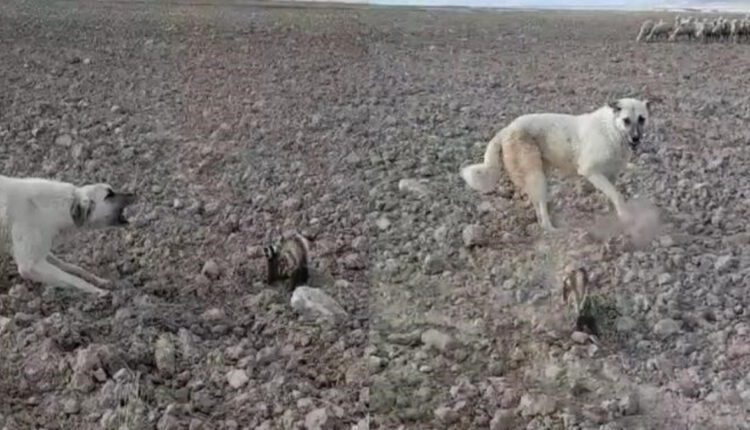 Bülent Çelik, ein Hirte im Dorf Akpınar im Bezirk Kozaklı, zeichnete den Kampf des Kalikowiesels, dem er zum ersten Mal begegnete, als er in seinem Dorf Schafe weidete, mit den Schäferhunden Sekunde für Sekunde mit seinem Mobiltelefon auf.