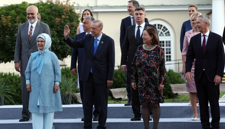 Präsident Recep Tayyip Erdoğan und seine Frau Emine Erdoğan nahmen auch an dem Abendessen im Präsidentenpalast in Vilnius, der Hauptstadt Litauens, anlässlich des NATO-Gipfels teil.