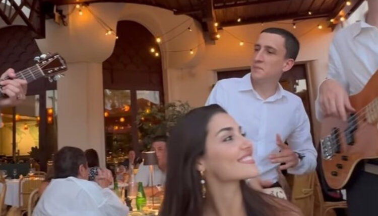 Hakan Sabancı brachte seiner Freundin Hande Erçel in dem Restaurant, in dem sie saßen, ein Ständchen. Auch Hande Erçel veröffentlichte diese Momente auf ihrem Instagram-Account.