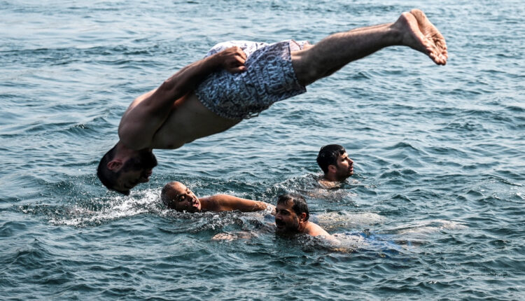 Bürger, die nicht in den Urlaub fahren konnten und die Hitze Istanbuls ertragen mussten, versuchten sich durch einen Sprung ins Meer abzukühlen.