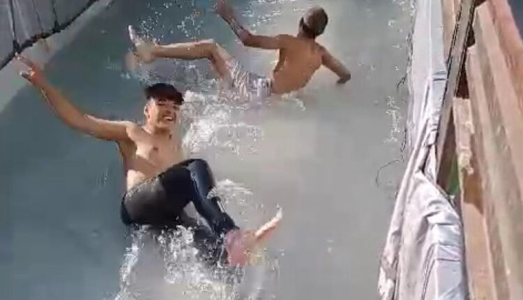 Kinder haben in Bursa einen Lastwagen in einen Pool verwandelt: Lustige Momente auf der Kamera festgehalten