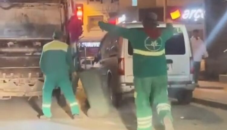 Murat Altınışık, einer der Gemeindebeamten, begann mit dem Horn zu spielen, das aus dem Fahrzeug hinter dem Lastwagen kam, als er im Bezirk Emek Müll sammelte.