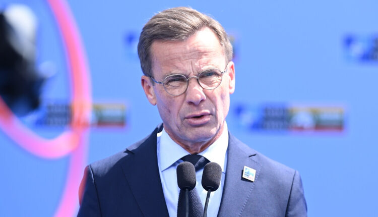 Nach der Entwicklung, die in der Weltpresse Aufsehen erregte, beantwortete der schwedische Ministerpräsident Ulf Kristersson bei seiner Ankunft auf der Litexpo in Ilnius die Fragen der Journalisten.