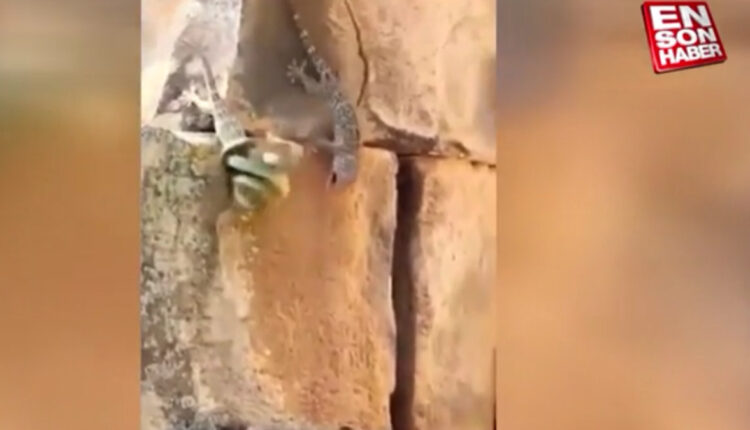 Video; Der Vorfall ereignete sich, als eine Eidechse eine Schlange attackierte, um die andere Eidechse zu retten.