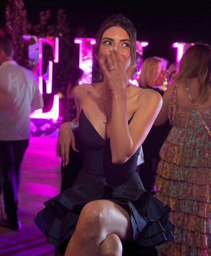 Die berühmte Schauspielerin trat in einem Kleid mit tief ausgeschnittener Brust vor der Kamera auf. Die Yavuz-Posen, die er seinen Followern gab, präsentierte er auf seinem Social-Media-Account.