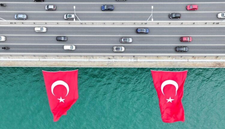 Auf der Brücke fanden riesige türkische Flaggen ihren Platz