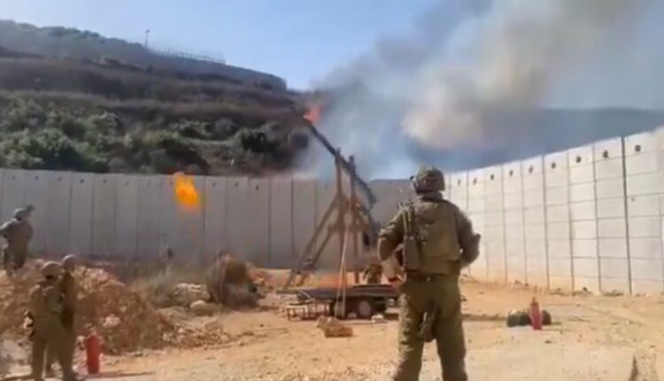 Israelische Soldaten, die ein Katapultsystem aufstellten, begannen, die Felder an der libanesischen Grenze durch das Werfen von Feuerbällen in Brand zu setzen.