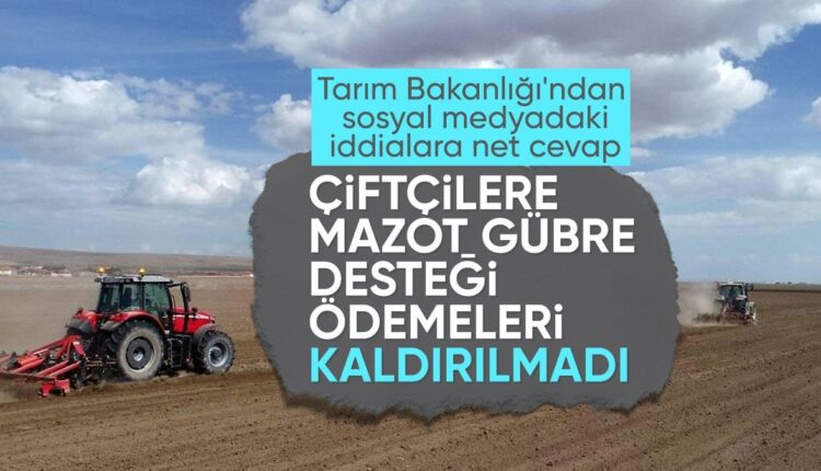 Das Ministerium erklärte, dass die Nachricht unbegründet sei und sagte: „Einige Medien behaupten, dass der Dieselkraftstoff- und Düngemittelzuschlag abgeschafft wurde und der Differenzzahlungszuschlag, den unsere Produzenten als Prämienbasis bezeichnen, nicht mehr gewährt wird. „Das ist völlig unbegründet.“Ausdrücke waren enthalten.