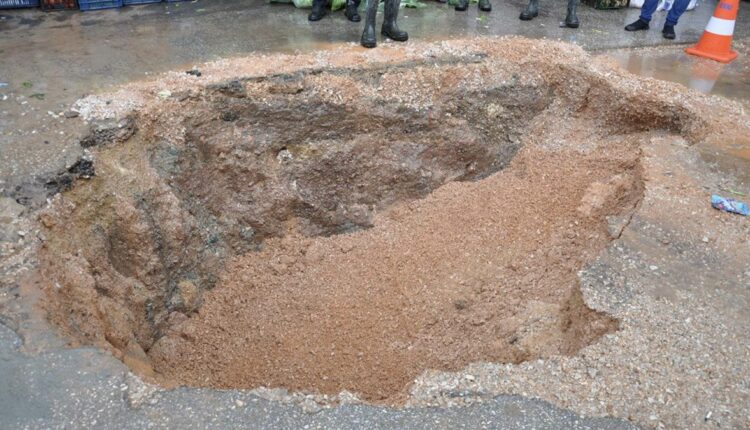Aufgrund des starken Regens in Eskişehir ist die Straße eingestürzt