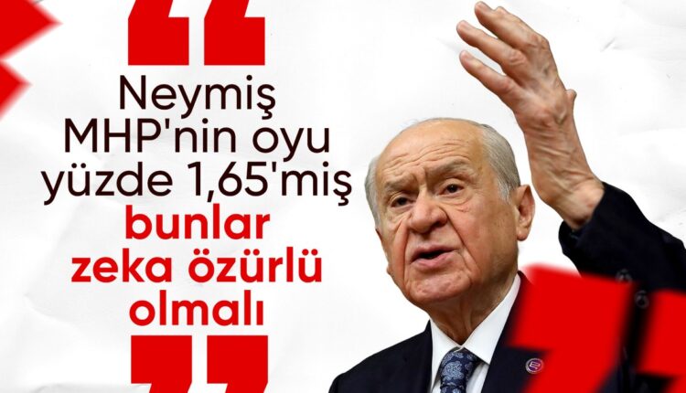 Betrachtet man es aus der Perspektive einiger geistig behinderter Menschen, erhielt unsere Partei 1,65 Prozent der Stimmen. MHP, die in 28 Provinzen ein Bündnis und in zwei Metropolen einen eigenen Kandidaten hat, mit 1,65 Prozent zu gewichten, ist nicht nur rücksichtslos, sondern hat auch eine dunkle Absicht. Wer Wasser im Mörser schlägt, hat den Mut verloren. MHP hat in ganz Türkiye außergewöhnliche Ergebnisse erzielt. Unsere Nation hat ihre Entscheidung getroffen und sich nicht vor ihren Liebhabern gebeugt. Die Entscheidung unserer lieben Nation liegt auf unserem Kopf.