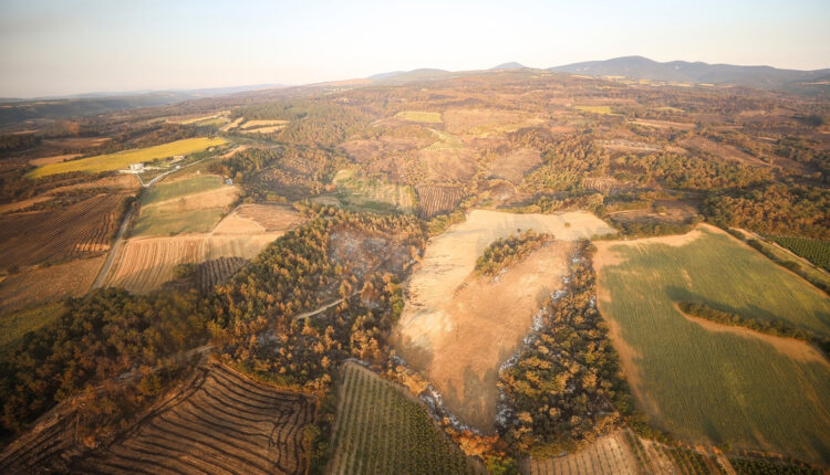 Brennende Gebiete in Çanakkale aus der Luft betrachtet