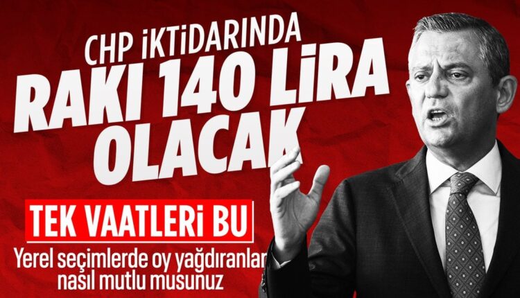 Özel, der versprach, dass der Preis für 1 Liter Raki bei einer Machtübernahme der CHP bei den nächsten Parlamentswahlen 140 Lira betragen würde, wurde von den CHP-Mitgliedern mit Applaus bedacht.