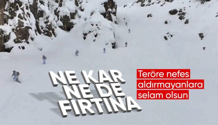 Der Beitrag enthielt Bilder der von Mehmetçik durchgeführten Missionen bei starkem Schneefall und schwierigen Geländebedingungen.