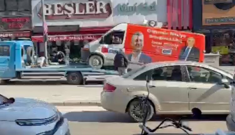 Abgesehen von Istanbul und Ankara, diesmal in Sivas, hatte CHPs eigenes Fahrzeug eine Panne und blieb auf der Straße liegen.
