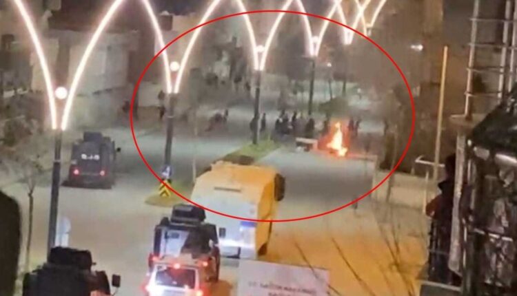 Gestern Abend blockierte eine Gruppe die Straße mit Müllcontainern und zündete Feuer an und machte damit Propaganda für die Terrororganisation PKK.