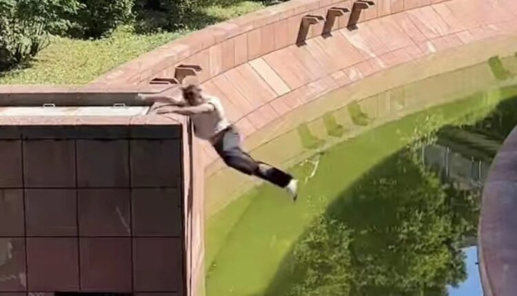 Die Momente, in denen Tommaso das Gleichgewicht verlor, als er versuchte, von einer hohen Stelle in die Stelle über dem Wasser zu springen, wurden mit der Kamera festgehalten.