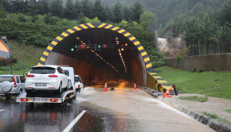 Die Richtung Istanbul des Bolu-Gebirgstunnels wurde von den Polizeiteams nach kurzer Zeit in der Region, in der der starke Regen wirksam war, für den Verkehr gesperrt.