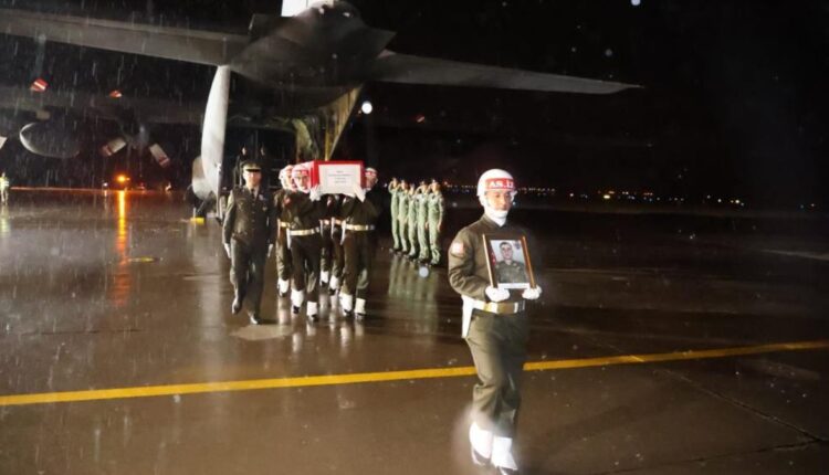 Nach der Bekanntgabe der traurigen Nachricht wurde der Leichnam des Märtyrers Abakay, der gestern Abend mit einem Flugzeug der türkischen Streitkräfte zum Flughafenkommando Muş gebracht und in die türkische Flagge gehüllt worden war, von der Zeremonieneinheit aus dem Flugzeug geholt und zum Bestattungsfahrzeug getragen .
