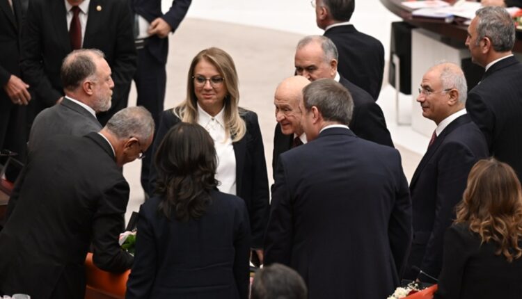 Bahçeli begrüßte den CHP-Vorsitzenden Özgür Özel und schüttelte der DEM-Parteigruppe die Hand.
