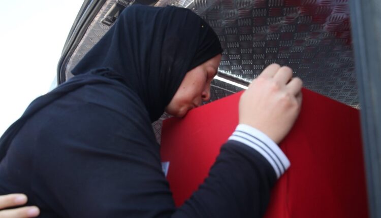 Die Mutter des Märtyrers, Gülten, sein Vater Tacettin und seine ältere Schwester Gülsüm Kızılateş umarmten den Sarg und vergossen Tränen.