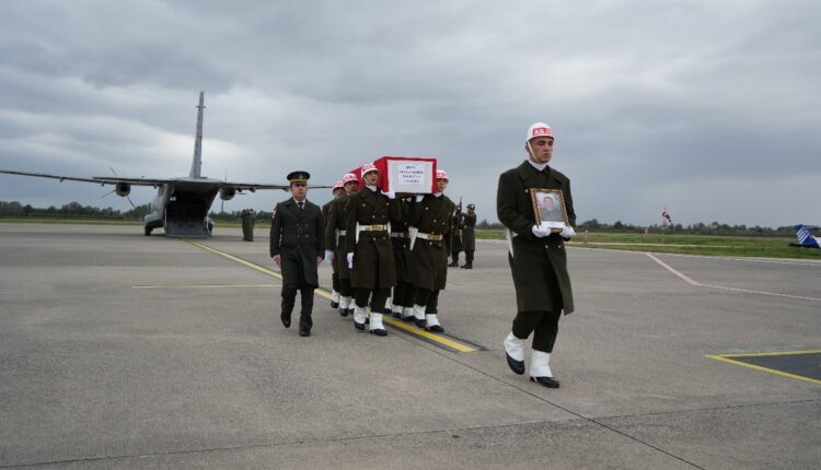 Während der Leichnam des Märtyrers Kander Babür mit einem Militärflugzeug zum Flughafen Samsun-Çarşamba gebracht wurde, wurde der Leichnam des Märtyrers hier mit einer Zeremonie begrüßt.