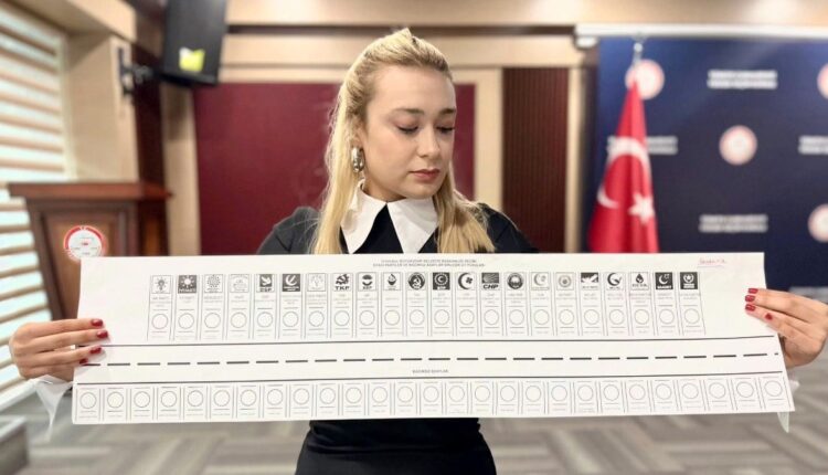 Der Stimmzettel für den Bürgermeister einer Metropole ist weiß, der Stimmzettel für die Mitgliedschaft im Provinzrat ist orange, der Stimmzettel für den Bürgermeister ist blau und der Stimmzettel für die Mitgliedschaft im Gemeinderat ist gelb. Die Wähler legen alle Stimmzettel in einen Umschlag. Die Länge des weißen Kompasses für die Stadtverwaltung von Istanbul beträgt etwa 1 Meter.