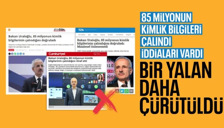Die Antwort des Ministers für Verkehr und Infrastruktur Abdulkadir Uraloğlu auf eine Frage zu diesem Thema wird aus dem Zusammenhang gerissen und als „Die Identitätsinformationen von 85 Millionen Menschen wurden gestohlen“ dargestellt.