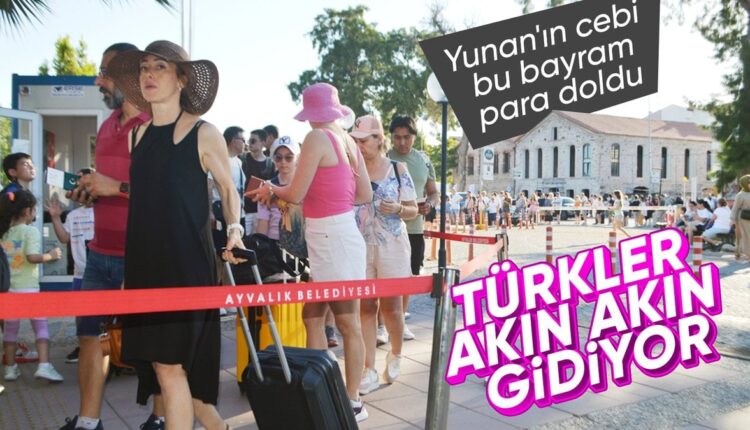Urlauber aus Metropolen wie Istanbul, Izmir, Bursa, Ankara, Muğla, Balıkesir, Manisa und Kocaeli bilden lange Schlangen vor dem Seegrenztor Ayvalık für Grenzübergänge, wo Tourismusagenturen aufgrund der Dichte zusätzliche Dienstleistungen anbieten.