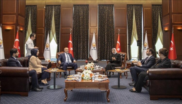 Zur Empfangsdelegation der AK-Partei gehören Reşide Yüksel, stellvertretende Leiterin der Zivilgesellschaft und Öffentlichkeitsarbeit der MKYK, Ayten Aydın, Mitglied der Frauenabteilung im Hauptquartier, und Taha Kara, Mitglied des Zentralvorstands der Jugendabteilung im Hauptquartier, unter dem Vorsitz des stellvertretenden Vorsitzenden Belgin Uygur.
