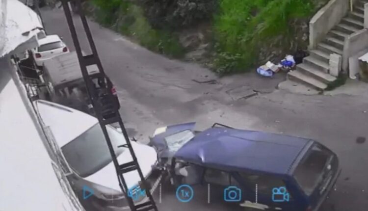 Der Moment des Unfalls wurde Sekunde für Sekunde auf der Überwachungskamera reflektiert. Auf den Bildern ist zu erkennen, dass der bergab kommende Pkw schnell auf das geparkte leichte Nutzfahrzeug prallte und dieses eine Zeit lang mitschleifte.