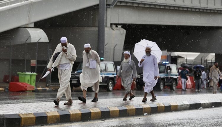 Während des Regens, der etwa 15 Minuten anhielt, sangen einige Pilger Takbir.