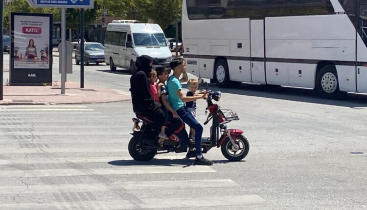 Eine fünfköpfige Familie, die in Konya Elektrofahrräder fährt, wurde vor der Kamera gefilmt