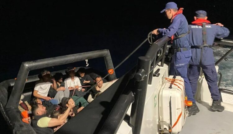 Die Teams begannen am selben Tag um 21.32 Uhr wieder mit der Arbeit, nachdem sie die Information erhielten, dass sich eine Gruppe irregulärer Einwanderer in einem Rettungsfloß vor der Küste von Dikili befand.