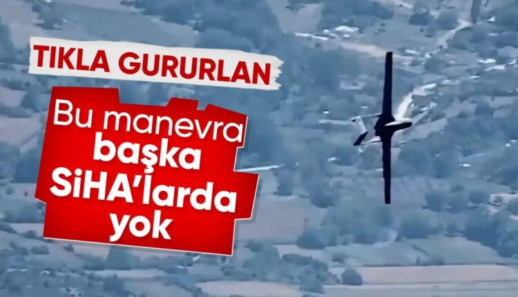 Bayraktar TB2, das zu Manövertests am Himmel unterwegs war, machte sich mit dieser Bewegung erneut einen Namen in der Weltluftfahrtgeschichte, indem es einer spiralförmigen Umlaufbahn folgte und sich vollständig um die eigene Achse drehte.