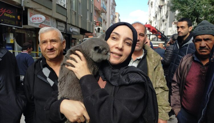Eines Tages saß ich zu Hause fest „Mia“Die genannte Katze wurde von Selma Yiğit und den Feuerwehrleuten, die das Gebäude betraten, herausgeholt.