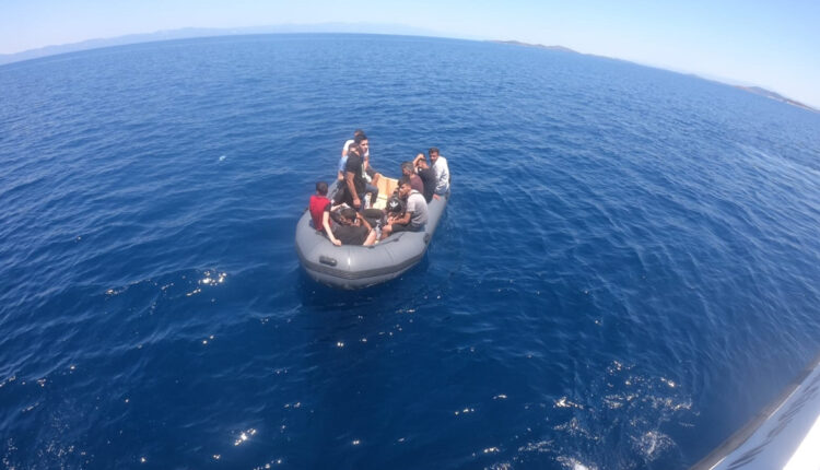 Teams der Küstenwache stellten fest, dass sich vor der Küste des Bezirks Ayvalık ein Schlauchboot mit irregulären Einwanderern befand.