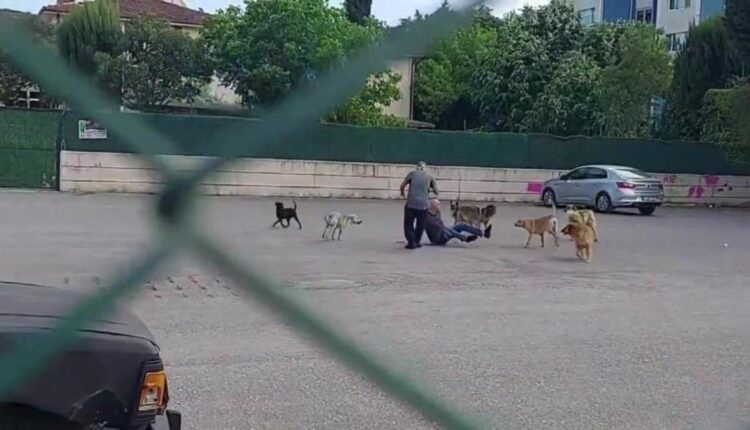 Er wurde mitten auf der Straße in Kocaeli von zehn Hunden angegriffen