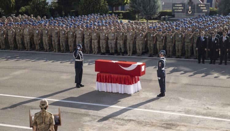 Bei der Zeremonie im Gendarmeriekommando der Provinz Tunceli wurden die in die türkische Flagge gehüllten Leichen der Märtyrer Spezialfeldwebel Mehmet Aykanat, Fachfeldwebel Orhan Burak Büyükçaylı und Fachkorporal Doğan Kızılateş in die Gegend gebracht und auf einen Katafalk gelegt.