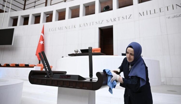 In der Großen Türkischen Nationalversammlung, die nach dem Eid ihre Arbeit aufnehmen wird, wurden fieberhafte Sauberkeitsarbeiten durchgeführt und alle Bereiche des Parlaments wurden für den Einsatz durch Abgeordnete vorbereitet.