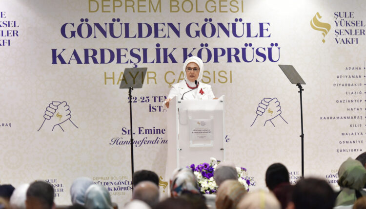 Emine Erdoğan, Ehefrau von Präsident Recep Tayyip Erdoğan, nahm am Programm „Earthquake Zone Heart to Heart Brotherhood Tables Charity Bazaar“ teil, das von der Şule Yüksel Şenler Foundation organisiert wurde, deren Ehrenpräsidentin sie ist.