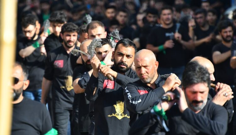 Die Gruppe schlug ihre Körper und fesselte sie, begleitet von Elegien, von der Faikbey-Straße bis zur Vorderseite der Işıklı-Ehlibeyt-Moschee.