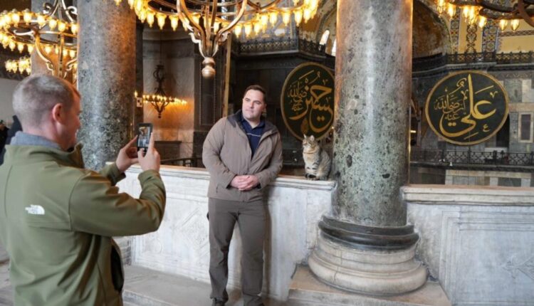 Die neue Besucherkatze der Hagia-Sophia-Moschee wurde von Besuchern in einen Fotobereich verwandelt. Jeder Zustand und jede Position der Katze wird sorgfältig fotografiert und in den sozialen Medien geteilt, um ein großes Publikum zu erreichen.