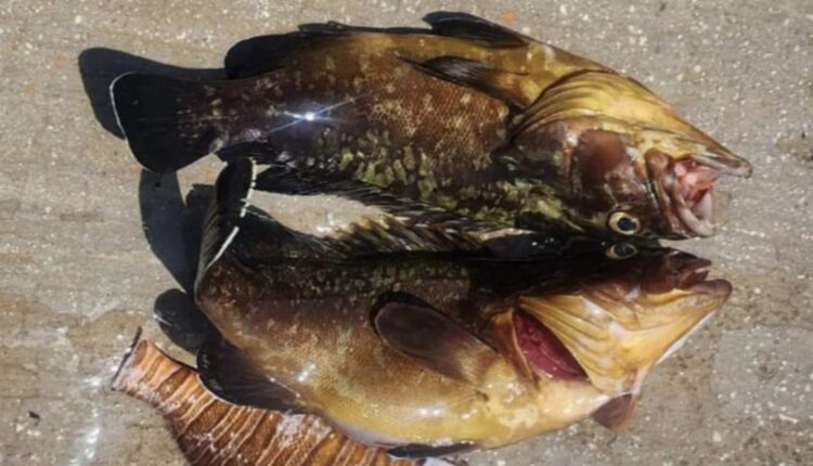 In Antalya entdeckten Teams des Küstensicherheitskommandos Kemer bei Inspektionen zur Verhinderung illegaler Aquakulturjagd auf einem Boot in der Phaselis-Bucht im Distrikt Tekirova den Fang von Zackenbarschen.