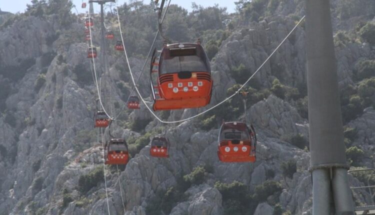Bei der Tünektepe-Seilbahn und den Gemeinschaftseinrichtungen im Bezirk Konyaaltı in Antalya, wo aufgrund des Eid al-Fitr-Feiertags viel los ist, fiel am Freitag, dem 12. April, um 17.28 Uhr eine der Stangen herunter und 8 Personen in der Kabine fielen in die Kabine felsiges Gebiet.