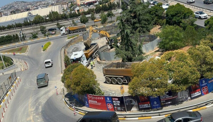 Auf dem vom Sultanbeyli-Streckenabschnitt geteilten Foto war zu sehen, dass IMM-Gruppen den Schachttunnel der U-Bahn schlossen, indem sie mit Baggerfahrzeugen Schutt hineinschütteten.
